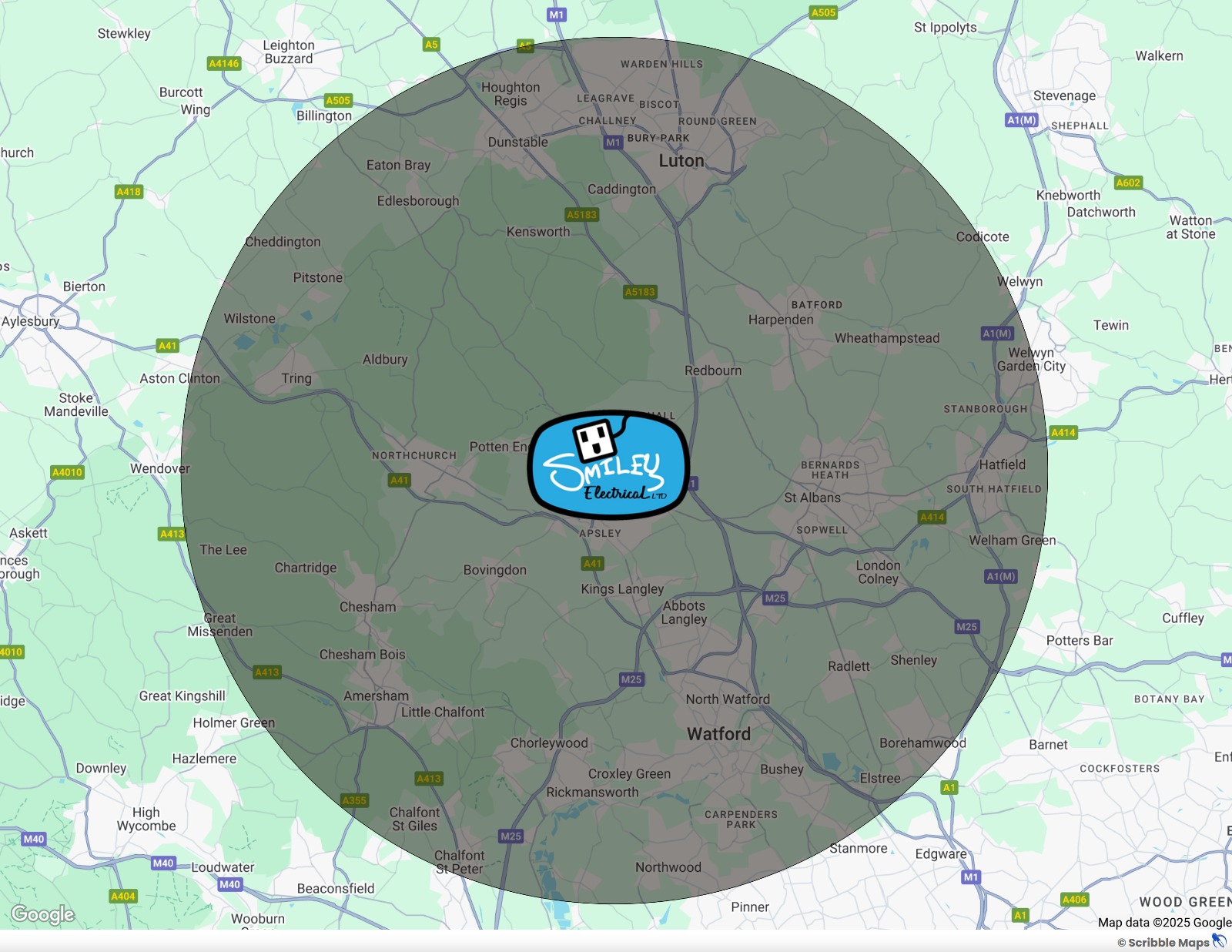 Our team of experienced, qualified electricians is ready to respond to your urgent electrical needs across a 12-mile radius, serving domestic and commercial customers across Hertfordshire and Buckinghamshire.